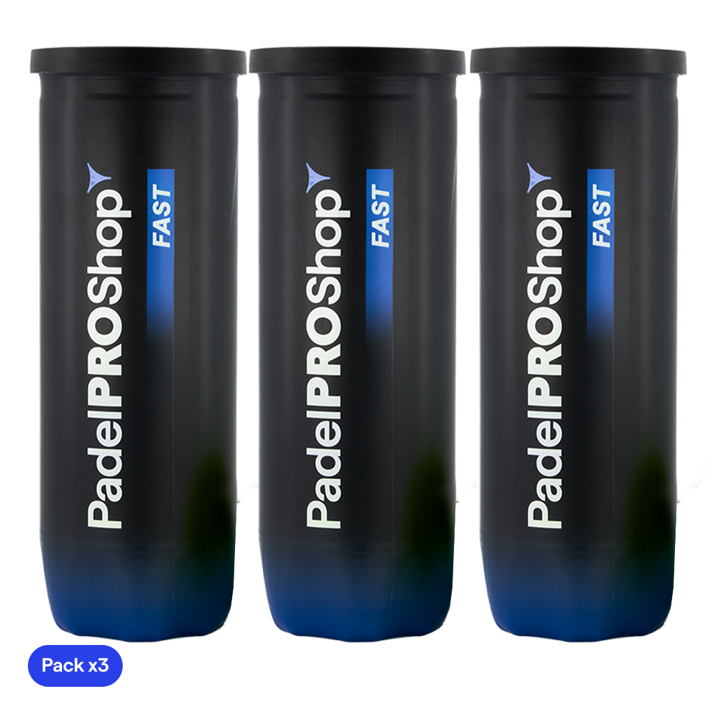 Dreierpack Ball-Röhrchen PadelPROShop Fast Diese sind für das Wettkampfspiel konzipiert Padelbälle Sie kombinieren eine hochwertige Wollzusammensetzung mit einem reaktiven Gummikern, der eine konstante Leistung gewährleistet. Jeder Ball entspricht professionellen Standards: 63,5–67,7 mm Durchmesser, kontrollierte Verformungseigenschaften und zuverlässige Rückpralldynamik.