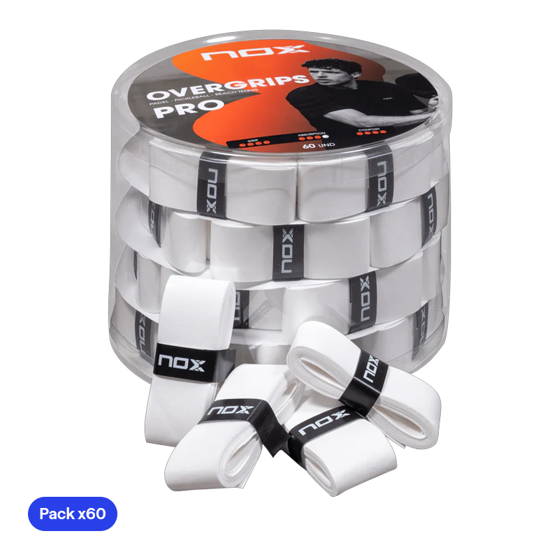 Griff Professionell mit angenehmem Ballgefühl und konstanter Leistung in jedem Spiel. Diese 60er Trommel Griffband Nox in Weiß Smooth ist für Spieler und Vereine konzipiert, die bei stundenlangem, intensivem Spiel festen Halt, große Elastizität und maximalen Komfort benötigen. Seine Konstruktion Pro Mildert die auf den Arm übertragenen Vibrationen und ermöglicht so präzisere und stabilere Schläge unter allen Bedingungen. Sicherer und gleichmäßiger Halt, hohe Elastizität für gleichmäßigen Sitz und überragender Komfort, der Ellenbogenbeschwerden reduziert. Ideales Sparformat für Clubs, Monitore und Professionelle Spieler.
