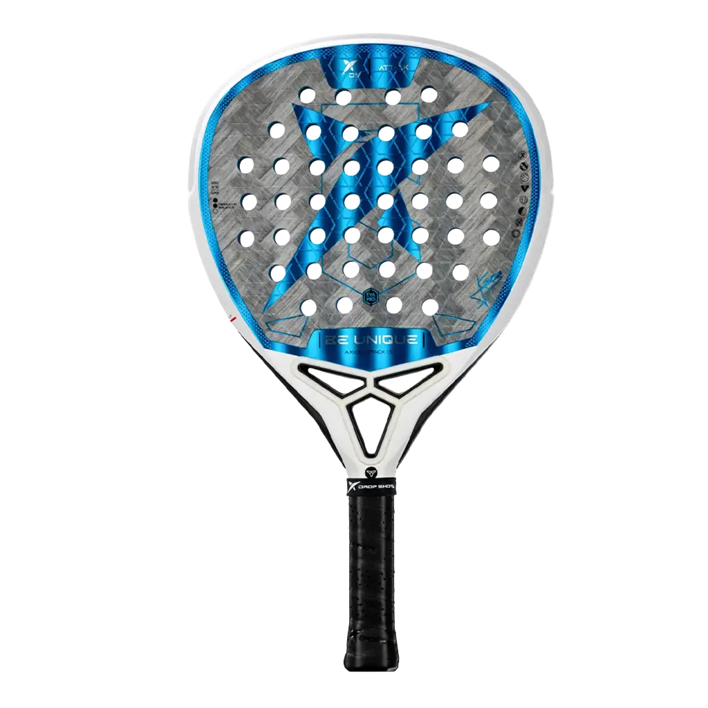 The Drop Shot Padel Racket Axion Attack 1.5, developed together with Professional Jon Sanz combines advanced technology and exclusive design for ambitious players. Your Shape of Teardrop and Balance medium-high offer an offensive game with Control precise. rubber core EVA Pro It guarantees an exact ball output in soft hits and power in attacks. Made with Carbon 24K Twill, It provides lightness, flexibility and quick response to each impact. Ideal for those looking for performance and elegance on the court.
