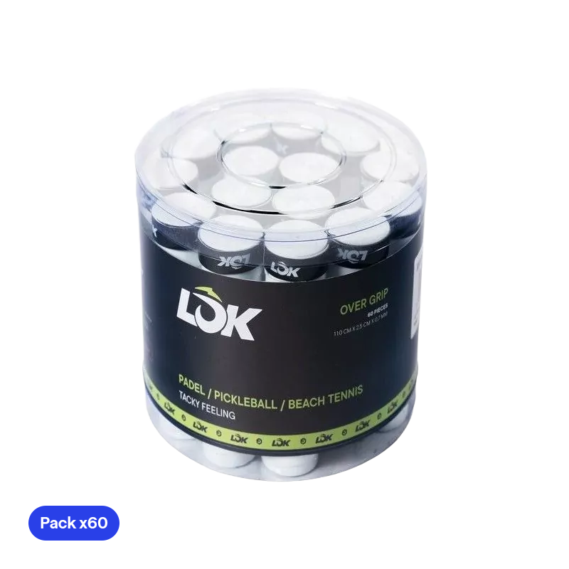 Drum Lok Tacky Feeling White With 60 superior grip overgrips, this drum provides an unwavering, comfortable and durable grip, regardless of competitive intensity or weather variations. Control unmatched in every shot The advanced generation tacky texture creates a sticky surface that ensures total control of your racket or racket. Under the intense heat of the beach or at social gatherings Maximum indoor requirement, the Lok Tacky Feeling keeps your equipment firmly in control, allowing you to execute every shot with precision and confidence.