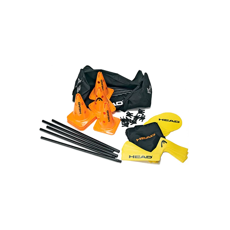 Kit Head Training to train the Shape physics and coordination. The bag has 6 large cones, 12 sticks with 8 clips, 12 track lines, 4 track corners, 6 targets, 1 small bag to carry everything and 1 poster Head Coaching developed in collaboration with trainers and in which the best Shape to use the items.