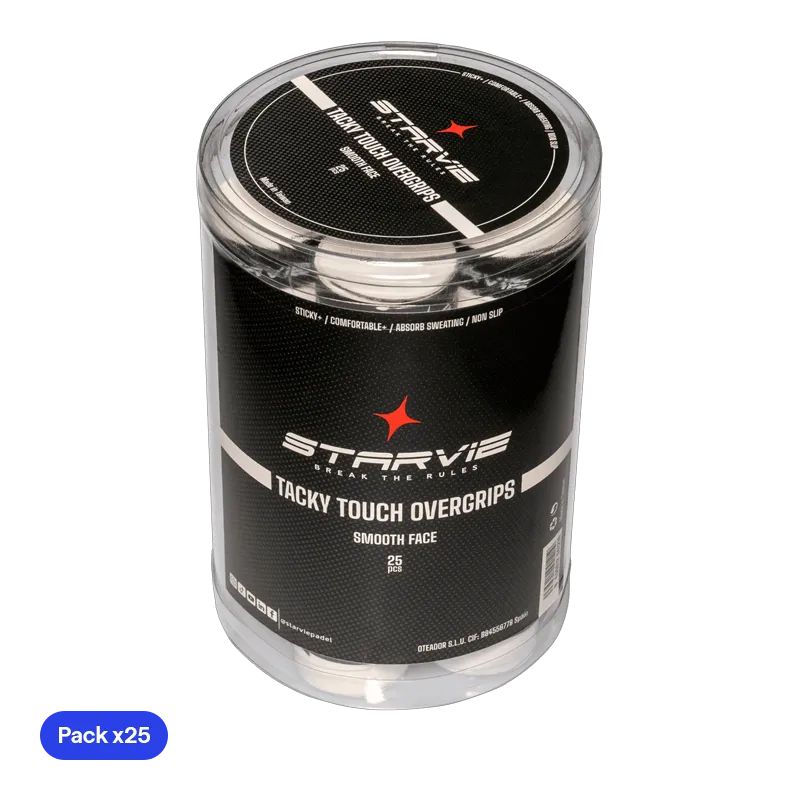 Overgrip Drum Starvie Tacky Touch Smooth White plain 25 pieces. Non-slip overgrip with great sweat absorption and greater comfort.