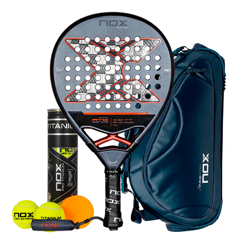 Do you want to equip yourself as Agustín Tapia? Here you have the Argentine player’s pack, made up of his NOX Padel Racket AT10 Genius 18K Alum 2025, the Padel bag Nox Pro Series Blue and a Can of balls Nox.